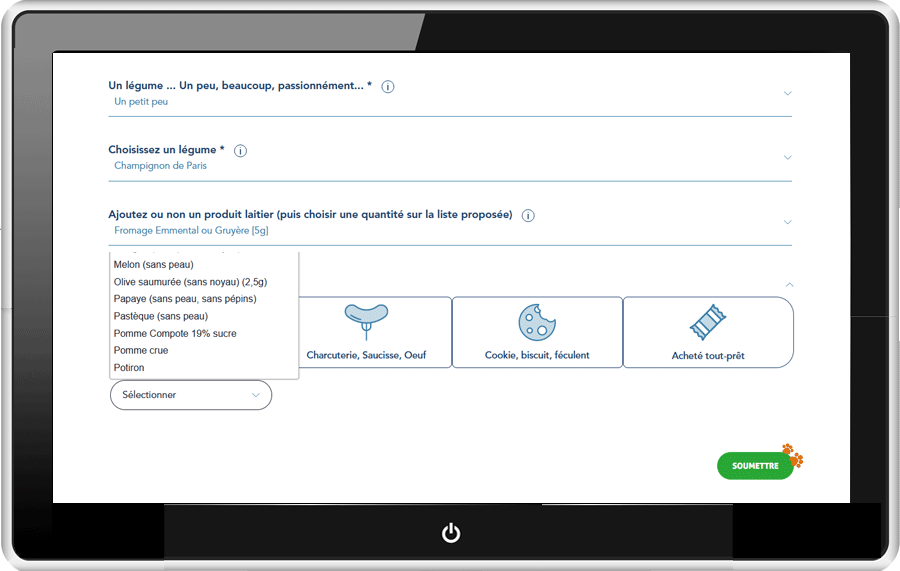 Sélectionner le type de recette et les ingrédients souhaités