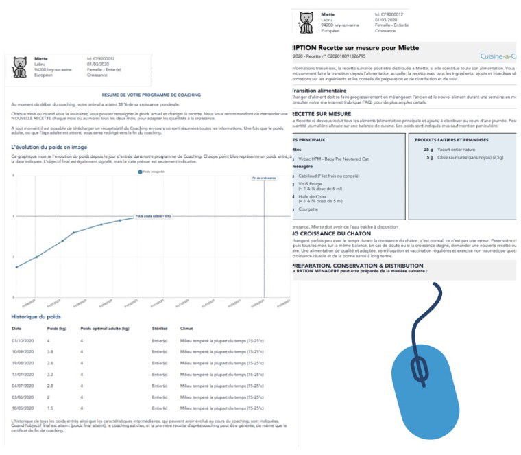 Dès finalisation du paiement, la première recette sur mesure pour votre chaton est disponible dans votre compte.