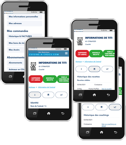 Le poids d'un animal en croissance étant en constante évolution, le coaching inclut des recettes jusqu'à son âge adulte, même en cas de stérilisation.